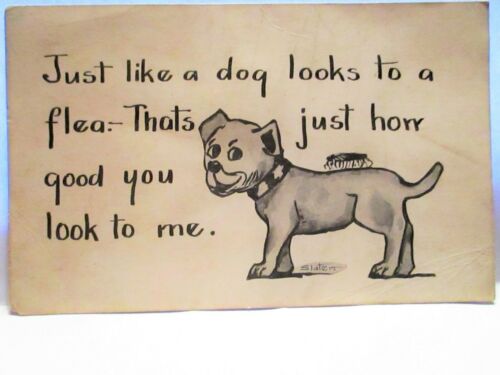 Title (ebay affiliate link): 1910 POSTCARD LIKE A DOG LOOKS TO A FLEA,THATS HOW GOOD YOU LOOK TO ME