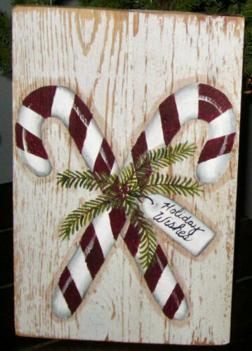 Title (ebay affiliate link): *~*PRIMITIVE*~* HP FOLK ART PRIM CANDY CANES * HOLIDAY WISHES *~* RECLAIMED WOOD