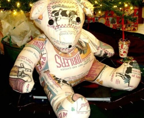 Title (ebay affiliate link): PRIMITIVE FEEDSACK SEEDPACK AMERICANA PATCHWORK TEDDY BEAR LARGE APRROX 15"X20"
