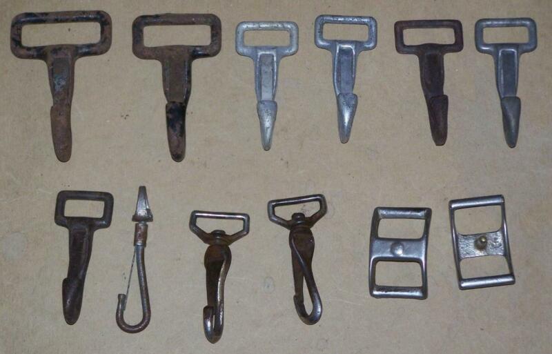 12 ANTIQUE METAL STRAP END HOOKS / BUCKLES