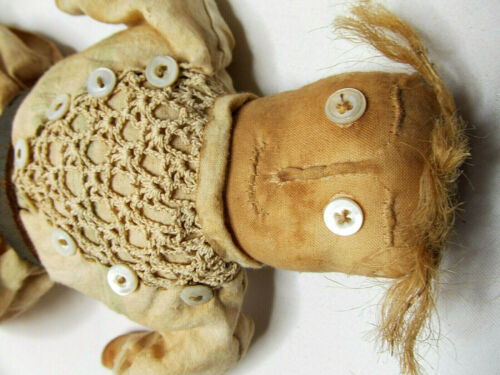 Title (ebay affiliate link): 16" Primitive Handmade Sugar Bag Dress Folk-Art Rag Doll Antique Button Eyes