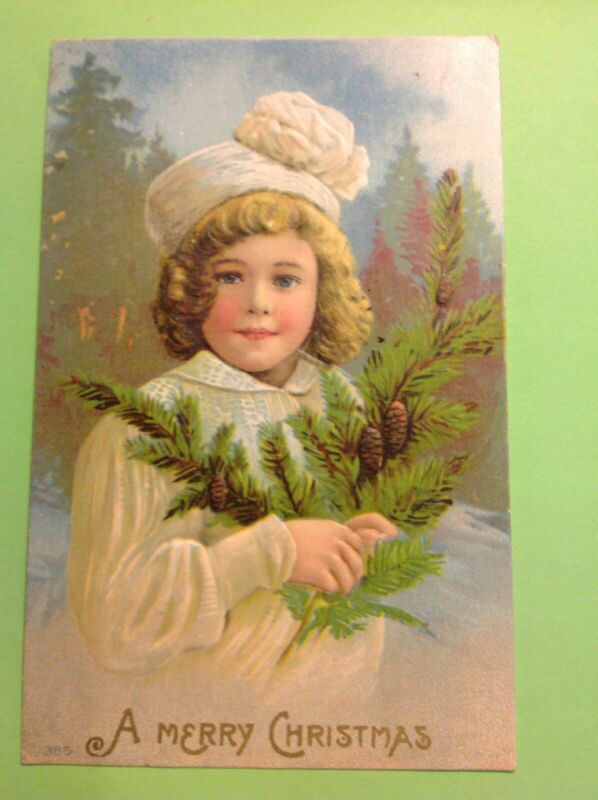 Title (ebay affiliate link): POSTCARD A MERRY CHRISTMAS -YOUNG GIRL W/ Tree Branch