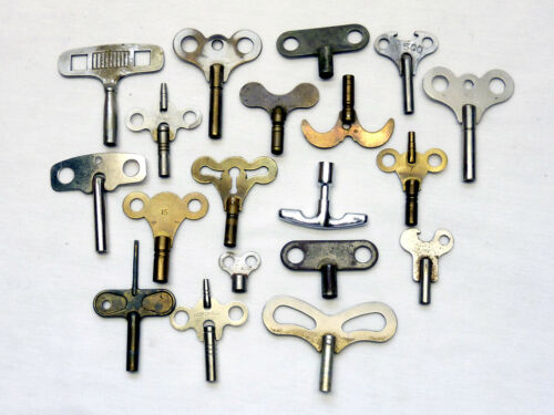 19 Antique Clock Winding Keys - Shelf/Mantel