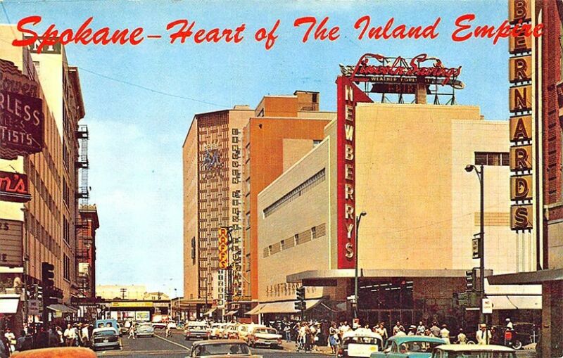 Title (ebay affiliate link): Spokane WA Wall Street "The Inland Empire" Storefronts Old Cars Postcard