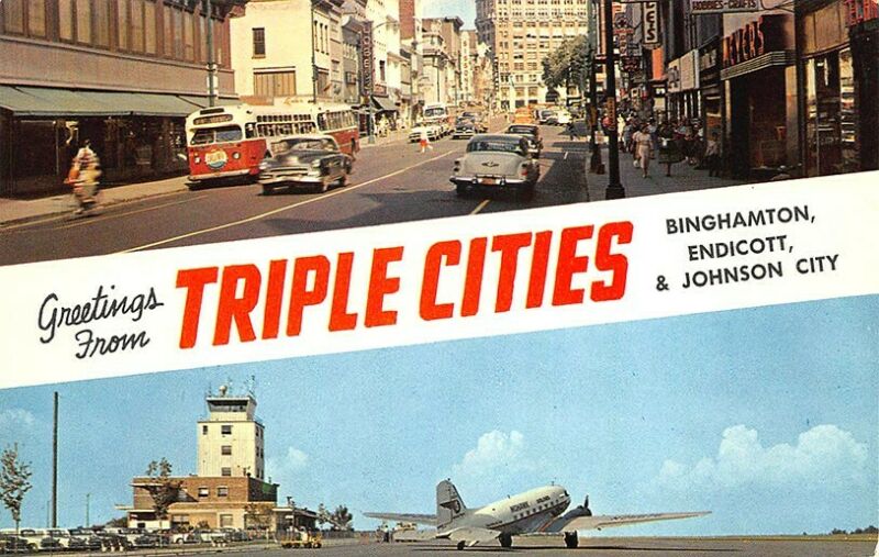 Binghamton NY Triple Cities Street Airport Mohawk Airlines Airplane Postcard