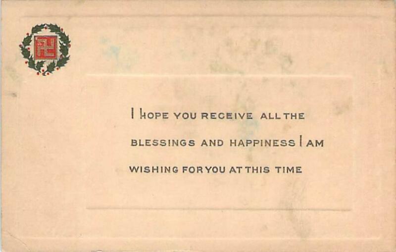 Title (ebay affiliate link): Blessings and Happiness for a New Year, Swastika Embossed Vintage Postcard