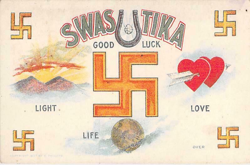 Title (ebay affiliate link): Good Luck Swastika Lithograph Light Love Life Vintage Postcard