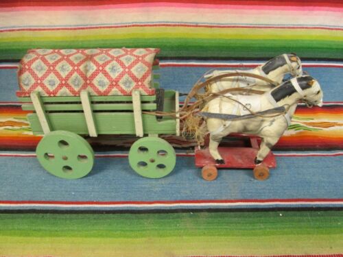 Title (ebay affiliate link): OLD ANTIQUE PRIMITIVE FOLK ART WOOD WAGON WITH PAIR OF HORSES USED CONDITION