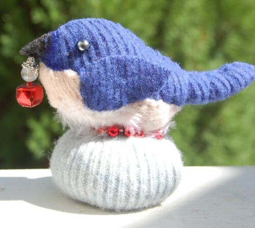 Pincushion Primitive Felted Wool Blue Bird Christmas Pin Cushion Handmade