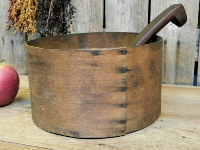 Title (ebay affiliate link): AAFA Early Antique Primitive Round Wood Pantry Box w/ Hooked Scoop