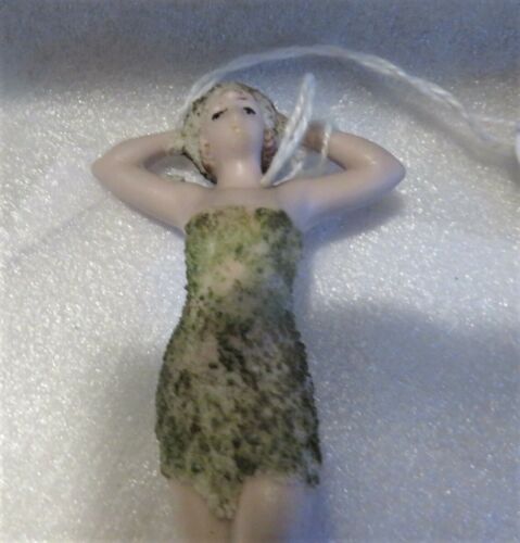 ANTIQUE BATHING BEAUTY FIGURINE - Green Suit