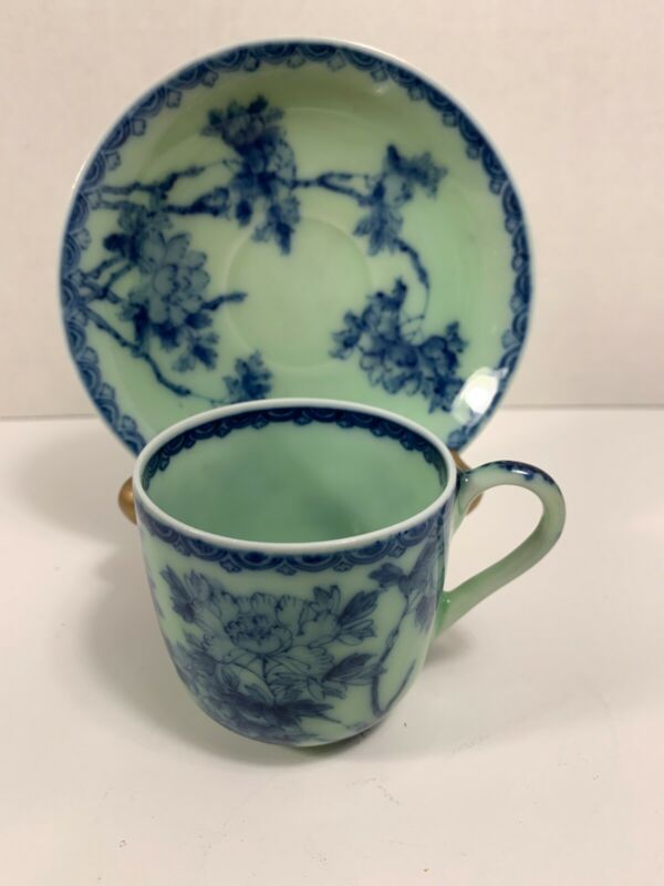 porcelain green and blue tea cup and saucer