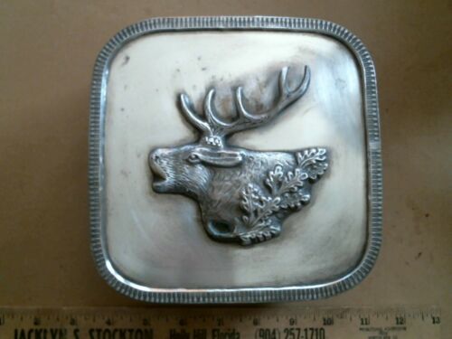 Title (ebay affiliate link): Unmarked silver Elk bas relief candy container antique vintage old decorative