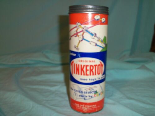 Vintage Junior Original Tinker Toy in Cannister with Instructions 1950''s