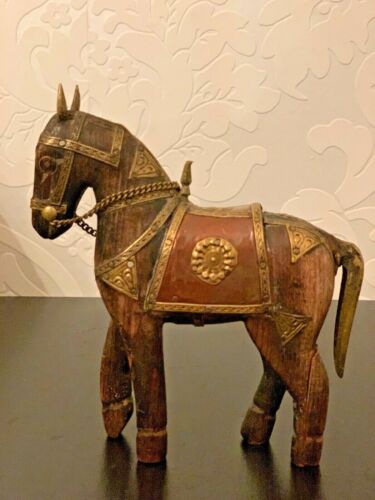 Title (ebay affiliate link): Vintage Indian Hand Carved Wooden Horse, Brass/Copper Wooden Horse Figurine