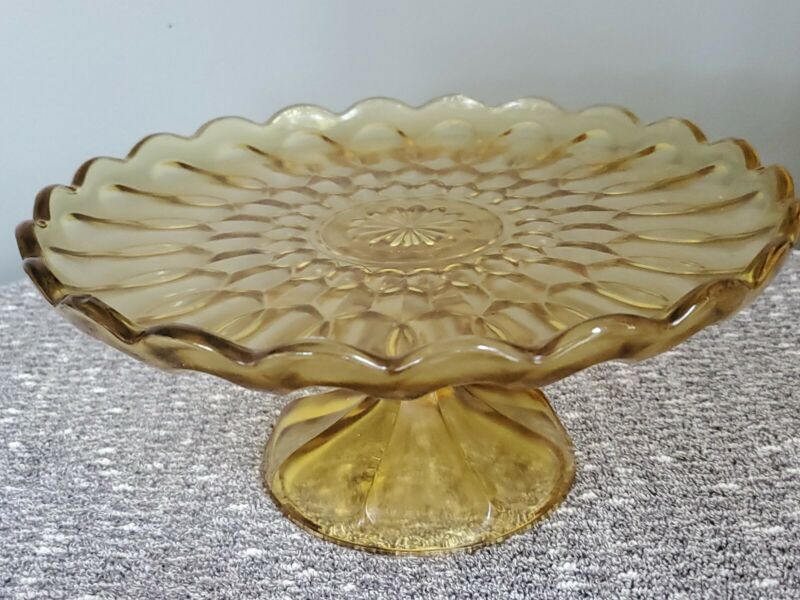Title (ebay affiliate link): VTG ANCHOR HOCKING FAIRFIELD 10" AMBER PEDESTAL FOOTED CAKE STAND PLATE HOLDER !