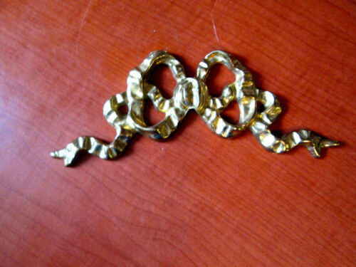 VINTAGE BRASS BOW & RIBBON FURNITURE APPLIQUE MOUNT PEDIMENT (555Y)