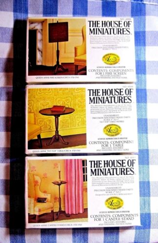 LOT DOLL HOUSE OF MINIATURES 3 QUEEN ANNE FURNITURE KITS, VINTAGE NEW OLD STOCK