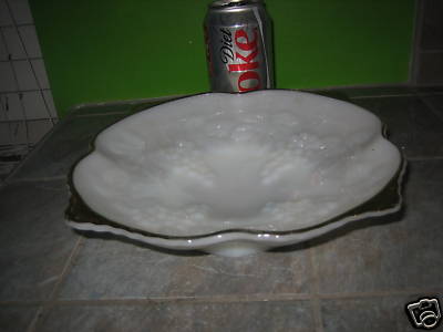 Vintage MILK GLASS w/ Grapes GOLD TRIM Bowl