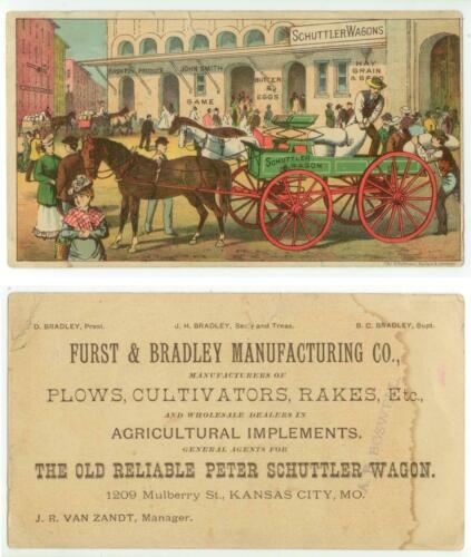 Title (ebay affiliate link): c1880s Peter Schuttler Wagons trade card - Furst & Bradley, Kansas City Missouri