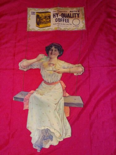 Vintage original cardboard sign Roth''s Hy-Quality Coffee extremely rare & early