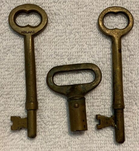 Title (ebay affiliate link): 3 Vintage Brass Keys, One Marked Adlake, One Hollow Barrel