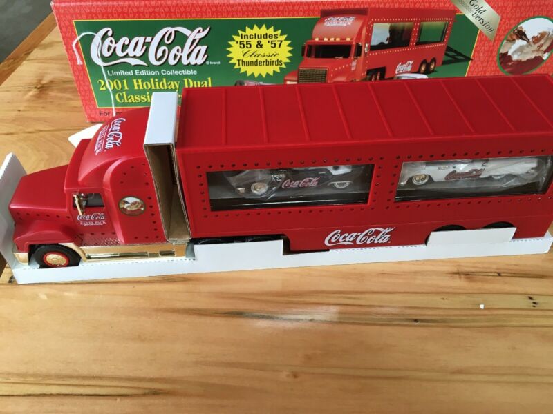Title (ebay affiliate link): 2001COCA COLA HOLIDAY DUAL CLASSIC CAR CARRIER WITH 55 & 57 THUNDERBIRDS &BOX