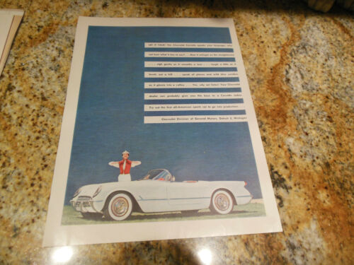 Title (ebay affiliate link): ORIGINAL VINT 1954 WHITE CHEVROLET CHEVY CORVETTE CONVERTIBLE CAR AUTO PRINT AD