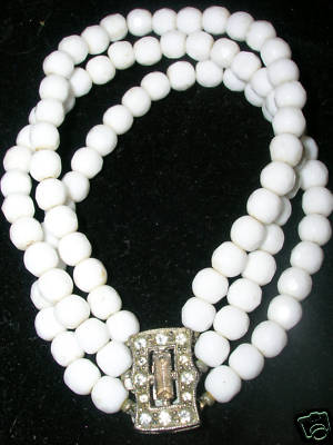 THREE STRAND WHITE MILK GLASS BRACELET NICE CLASP STONE