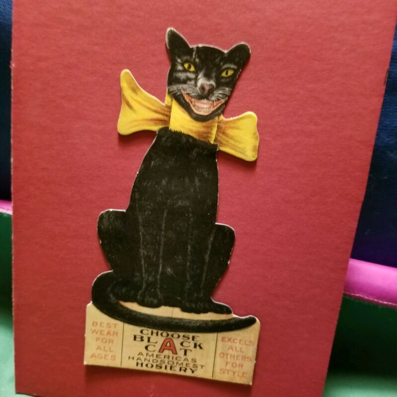 Title (ebay affiliate link): BLACK CAT HOSIERY Die-Cut Trade Card. VINTAGE. NICE CONDITION