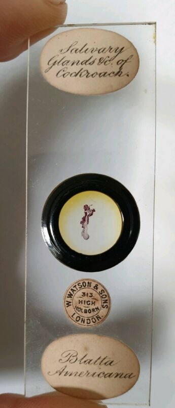 Title (ebay affiliate link): FINE ANTIQUE MICROSCOPE SLIDE "SALIVARY GLANDS OF COCKROACH" BY WHEELER