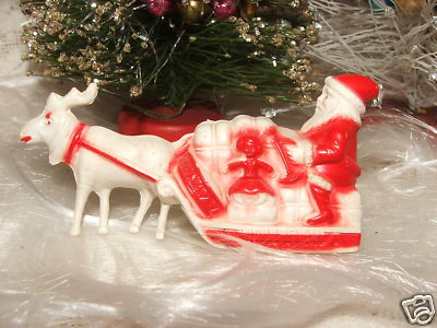 Title (ebay affiliate link): ANTIQUE VINTAGE CELLULOID CHRISTMAS SANTA SLEIGH DEER