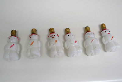 6 VINTAGE MILK GLASS SNOWMAN CHRISTMAS LIGHT BULBS