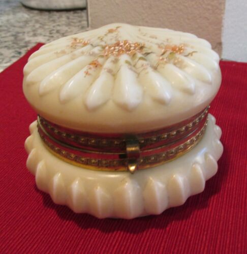 Antique Wave Crest Milk Glass Hinged Trinket Box With Original Lining - Nice!