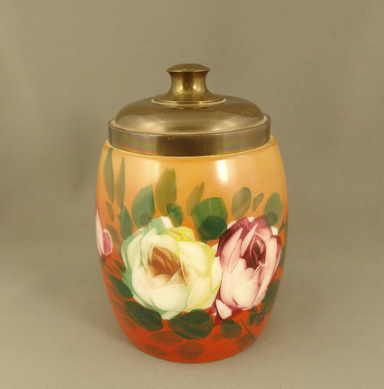 Title (ebay affiliate link): Antique Tobacco Humidor Jar Hand Painted Milk Glass w/ Brass Lid and Flowers