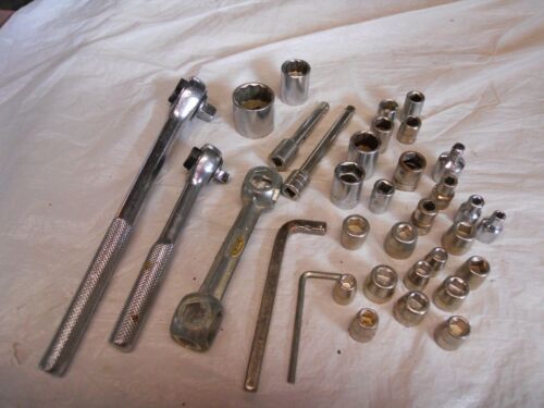 Title (ebay affiliate link): Lot of 34 Hand Tool pieces Socket Wrenches, Extenders, Sockets Standard, Metric