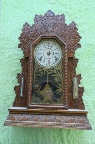 Title (ebay affiliate link): Antique Gilbert Concord Gingerbread Mantel Clock w/Thermometer/Barometer/Decal