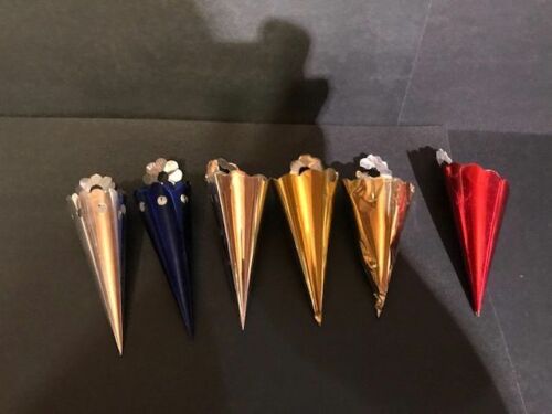 6 Antique Vintage 1930''s Foil Cone Candy Container Christmas Ornaments