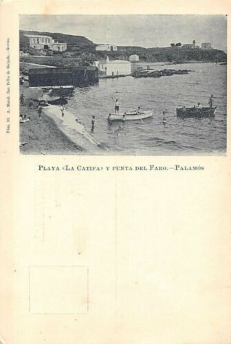 Title (ebay affiliate link): PALAMOS, CATALONIA, SPAIN, LA CATIFA BEACH, HARBOR & LIGHTHOUSE OVERVIEW c 1898