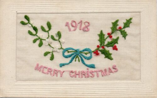 1918: MERRY CHRISTMAS: WW1 EMBROIDERED SILK POSTCARD