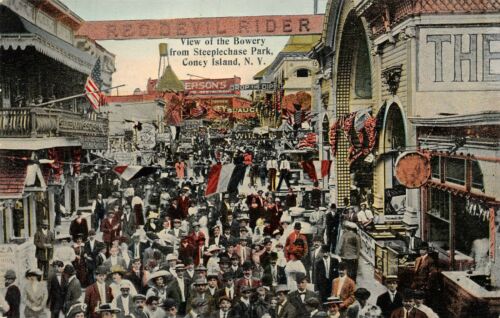 Title (ebay affiliate link): Coney Island, NY-Postcard of Mammoth Crowd at the Bowery Amusement Park Area