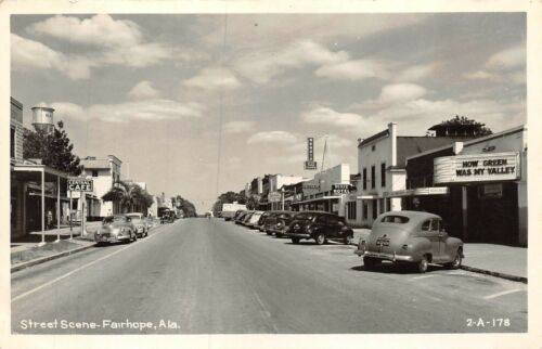 Title (ebay affiliate link): Fairhope, AL-Real Photo Street Scene-Vintage Cars-Stores-Movie Theatre