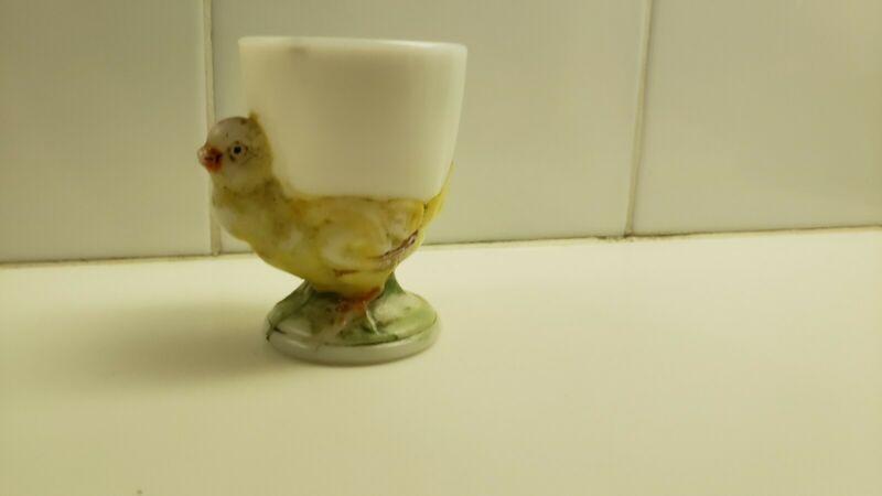RARE VINTAGE MILK GLASS EGG CODDLER WITH BIRD