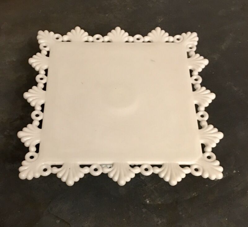 Doric, Lace Edge milk glass cake stand