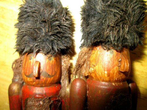 3 wood nutcrackers primitive brown painted & tree farmhouse Christmas vintage