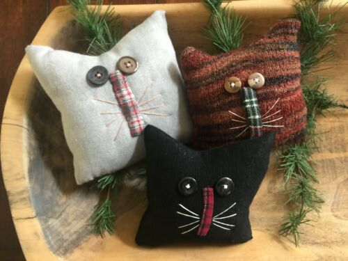 Primitive Old Home Cats Bowl Fillers Set of 3 Christmas Winter