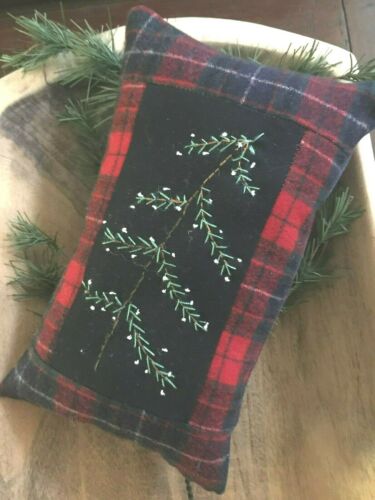Title (ebay affiliate link): Primitive Stitchery Pine Tree Hill Evergreen Christmas Ornie Red Woolen Plaid