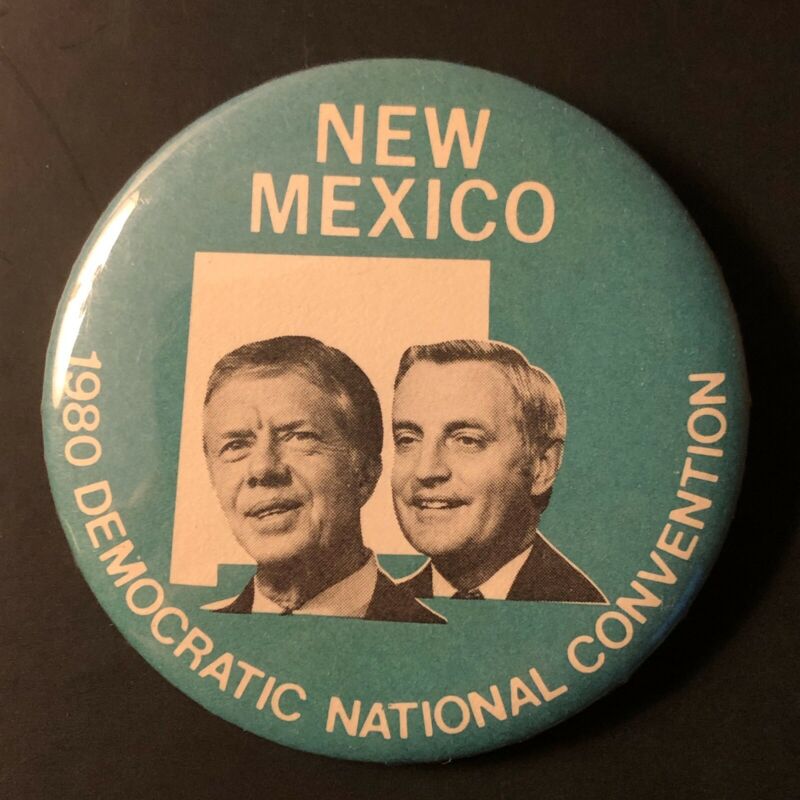 Title (ebay affiliate link): Jimmy Carter Walter Mondale 1980 New Mexico Democratic Convention Delegation Pin
