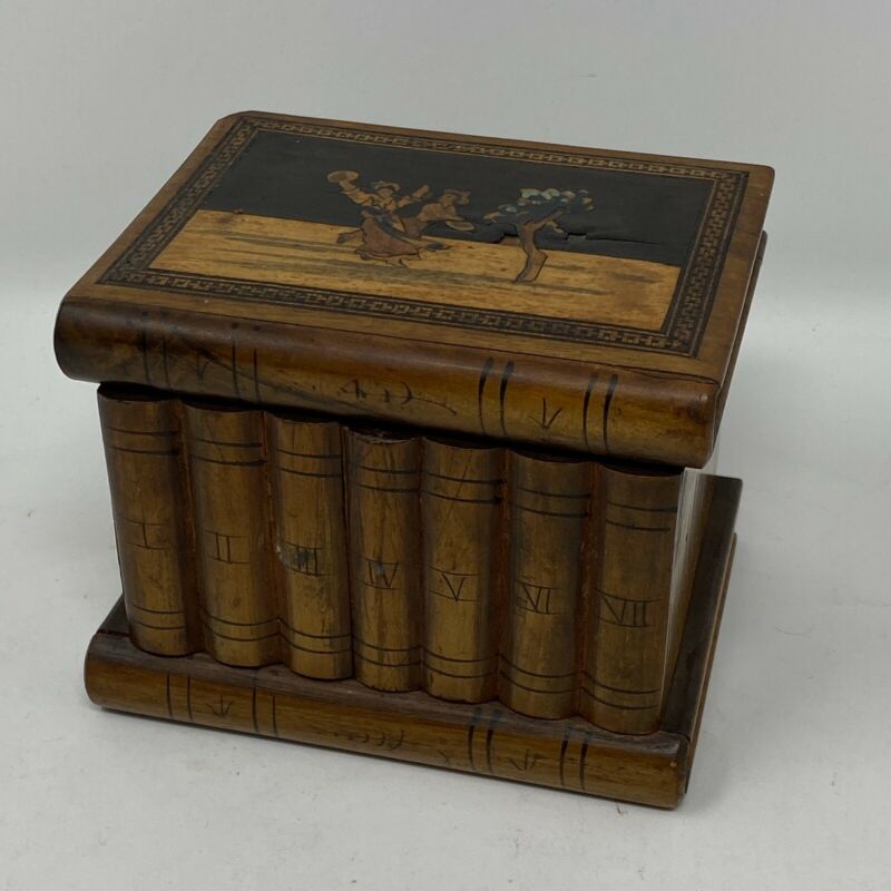 Title (ebay affiliate link): Antique Italian Hand Carved Wood Marquetry Box w/ Hidden Lock & Secret Storage