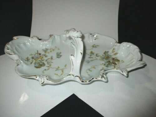 VICTORIAN PORCELAIN BRIDE''S BASKET FRUIT BOWL BLUE CLEMATIS MADE GERMANY